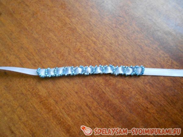 Когда цепочка будет готова, просто вплетите в нее ленточку необходимой длины (чтобы ее концы легко завязывались на вашем запястье). Браслет «Простой» из бисера и ленточки готов! Теперь можете переходить к освоению более сложных техник плетения бисером. Удачи!