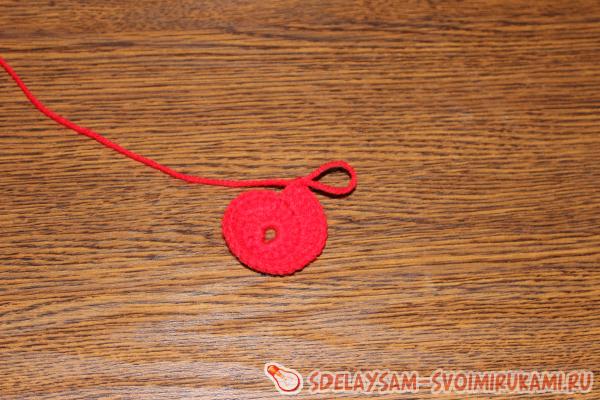 Вязание берета начинается с провязывания цепочки из 6 воздушных петель, которые необходимо замкнуть в кольцо. Это будет первый ряд.