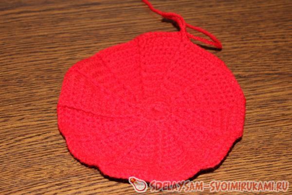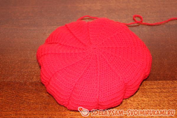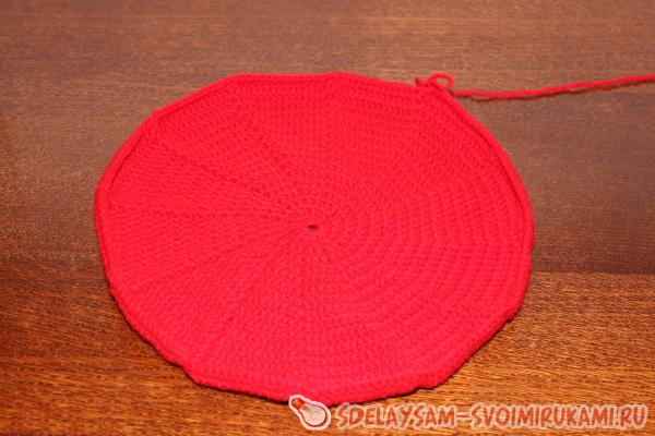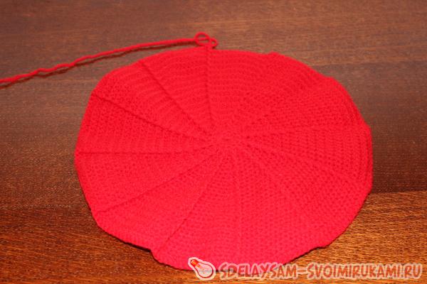 Число таких рядов с прибавками зависит от того, какого диаметра вы хотите связать берет. Так у меня получилось 16 рядов с прибавками в расчете на диаметр головы, равный 50 см.
