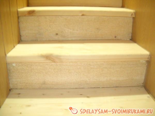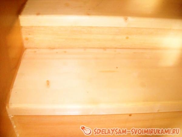 Для материала проступей и подступенек я выбрал хорошо отшлифованный сосновый клееный брус, который продается в любом специализированном магазине.