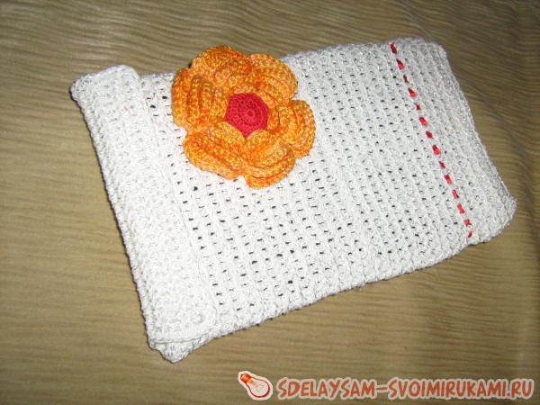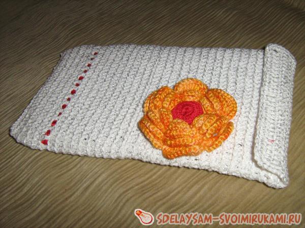 7 и следующие ряды: три в.п. для подъема, 60 ст.с.н., 1 с.с. Вяжем по кругу пока чехол не будет размером с ваш планшет. П.с. соединям стенки чехла.