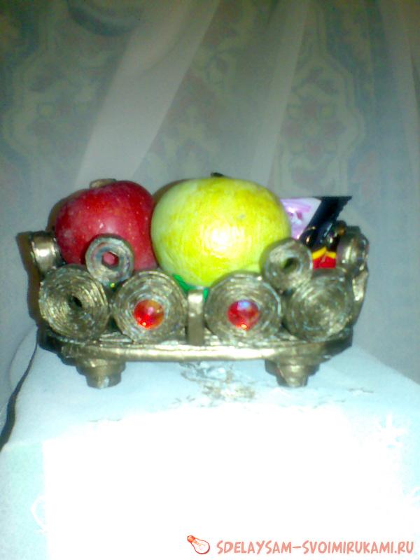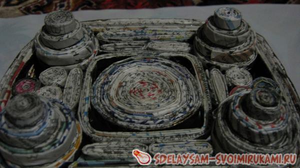 Вот, в принципе, и все. Ваза-конфетница из газетных трубочек готова. Желаю вам творческого вдохновения и полета фантазии!