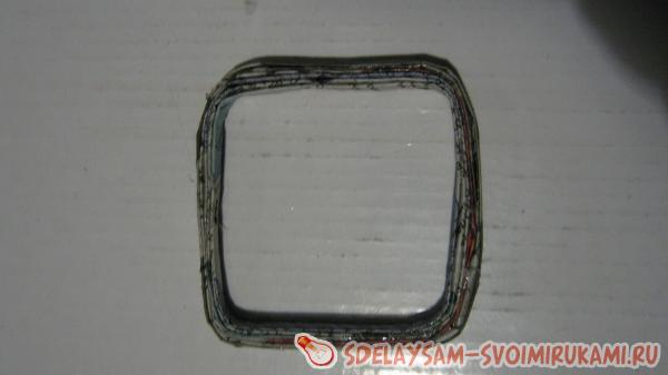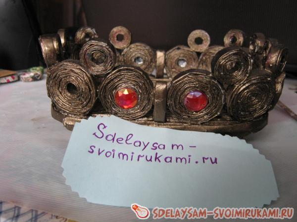 4. Теперь всю заготовку необходимо обернуть трубочками, каждый слой хорошо промазать клеем. Пустоты в форме нужно заполнить. Оклеивать форму нужно в несколько слоев, чтобы в дальнейшем на ней смогла закрепиться следующая деталь. В моем случае ее ширина составила 1см. Все хорошо должно просохнуть.