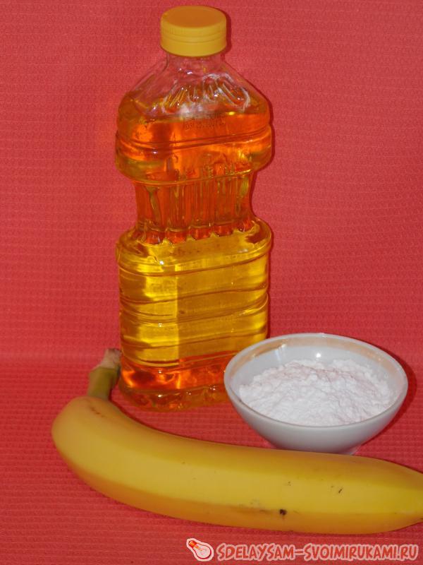 Для чипсов банановых мне понадобилось масло растительное, банан и пудра сахарная.