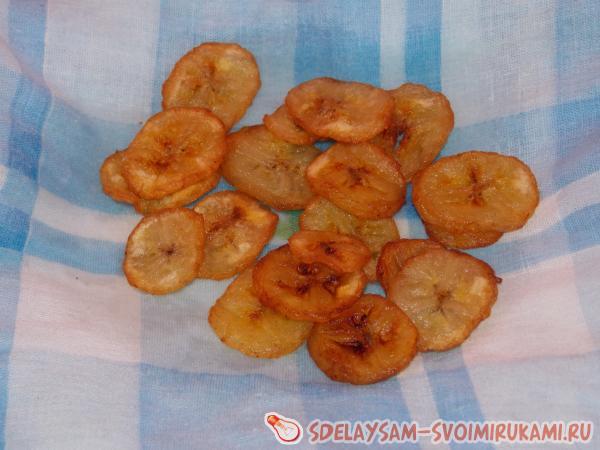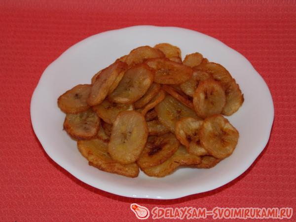 Затем переложила чипсы на тарелочку и посыпала пудрой.