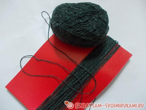 1. На лист картона равномерно намотать нити. Чтобы осьминог получился упитанным, нужно 100-130 витков нити (зависит от толщины нити). Наматывая, ложите нить, не натягивая, иначе картон будет загибаться, и вы не получите нужной длины витка.