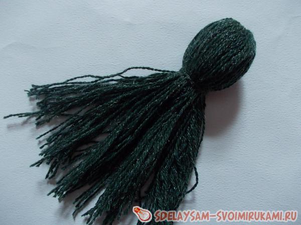 3. Край, который длиннее, разрезаем. Получается что-то, похожее на кисть для побелки. Эти нити – будущие щупальца осьминога, поэтому длина их должна составлять около 2/3 всего изделия.