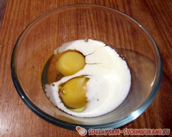 5. Взбиваем яйца с молоком.