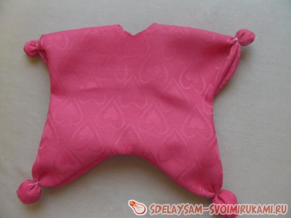 • Подогнув край тела-бабочки, пришейте потаенными стежками к основанию шеи.