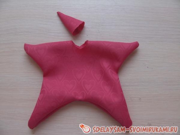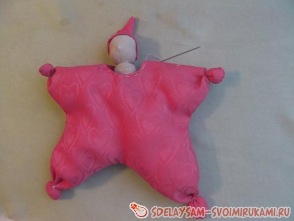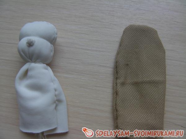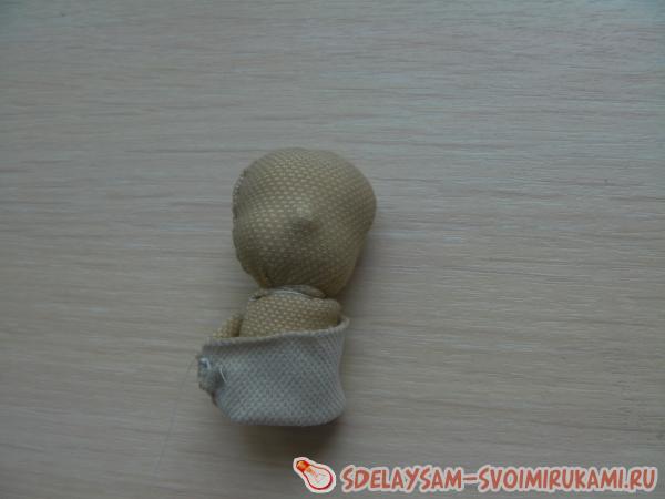 • Расправить складки на верхнем чехле и туго перетянуть ниткой основание головы (формируя подбородок).