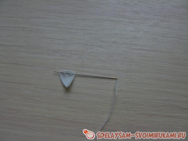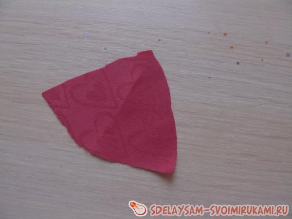 • Небольшой треугольник из белого трикотажа по краю наберите на иглу с нитью.
