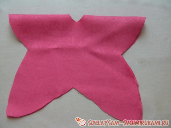 • Ткань сложить пополам и выкроите тело в форме бабочки.