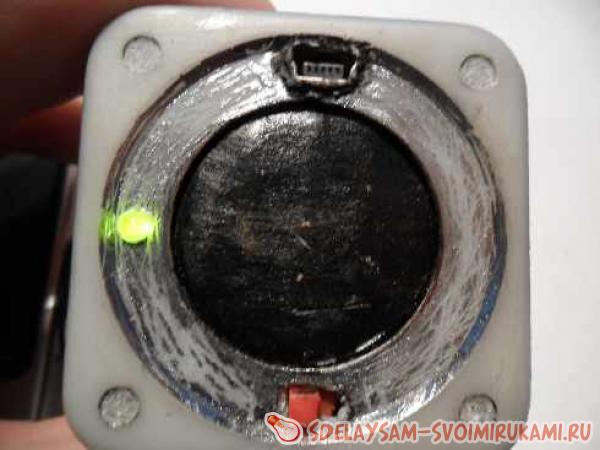 Так же можно при желании сделать индикатор работы, тумблер и порт для зарядки.