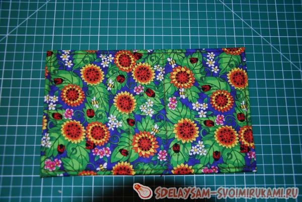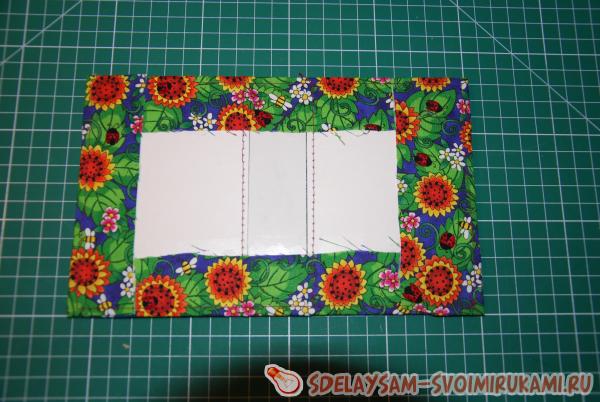 Теперь прошьём края полученной мягкой текстильной обложки на швейной машинке. Машинная строчка должна проходить по периметру обложки, отступая от края на 3-5мм и в середине для обозначения сгибов. Машинная строчка подчёркивает мягкость обложки.