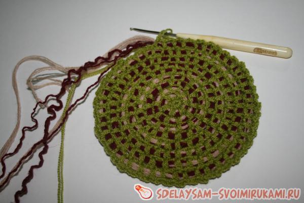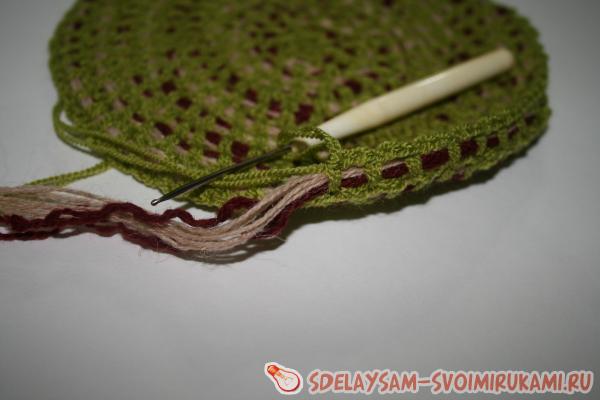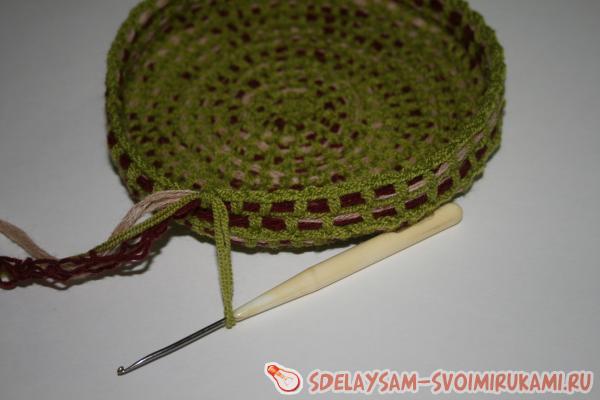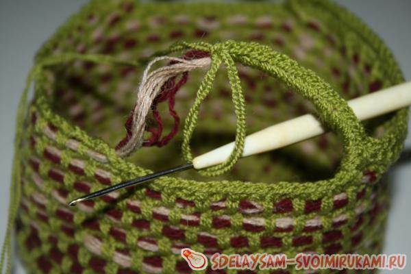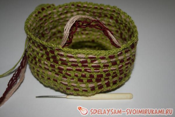 Когда обвязка дойдет снова до ручки ее надо обвязать.