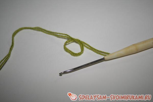 Чтобы корзинка вначале была без дырочки, начинаем вязать ее с петли амигуруми.