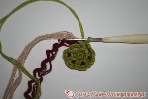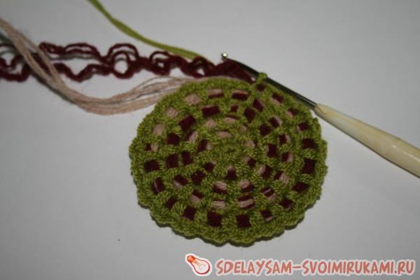 Обвязываем обычными столбиками без накида, делая их в каждый столбик первого ряда по два раза. Последний столбик каждого ряда соединяем с первым обвязочной петлей. Должен получиться такой кружок.