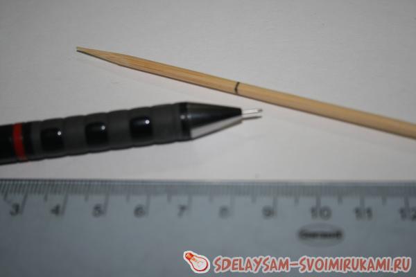 Сперва надо подготовить все сорок и одну палочку и сделать их одинаковой длины. Выбирайте более ровные палочки. Шпажки не всегда одного размера и ширины, поэтому будьте внимательны!
