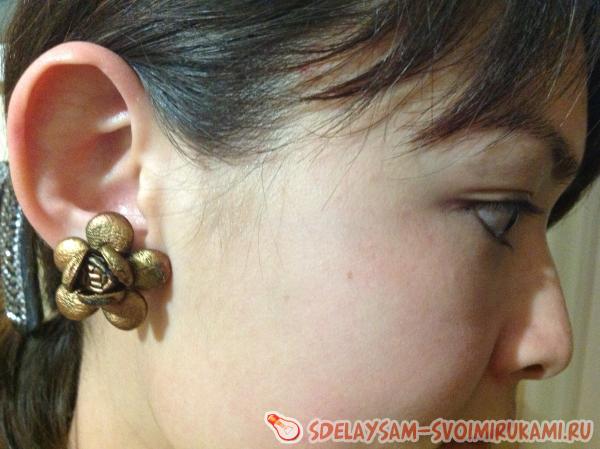 Кольцо. Приготовить полоску по размеру пальца, шириной 0,5-1 см., склеить её в круг. На приклеенное место наклеить листочки и готовый собранный цветок, как на клипсы.