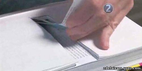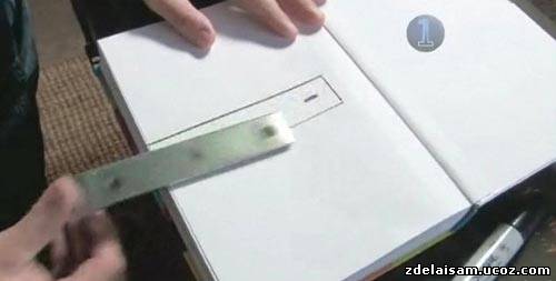 Ножом прорезаем в книге по разметке на глубину уголка.