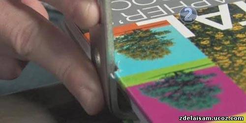 В обложке делаем вырез под уголок, что-бы книга плотно прилегала к стене.