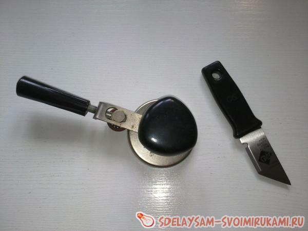 Также потребуются инструменты — нож и машинка для закрутки банок.