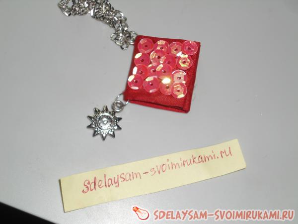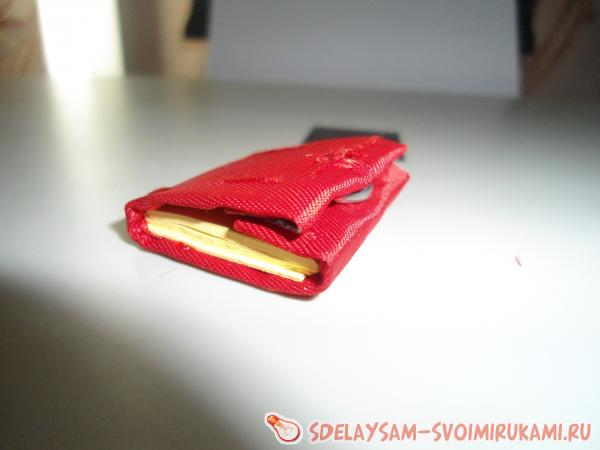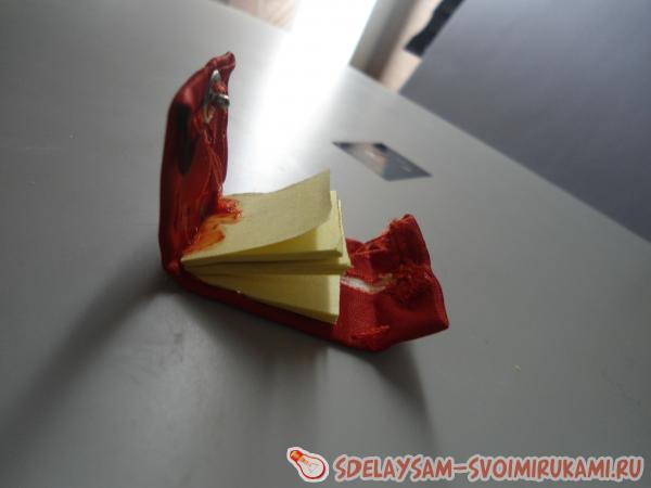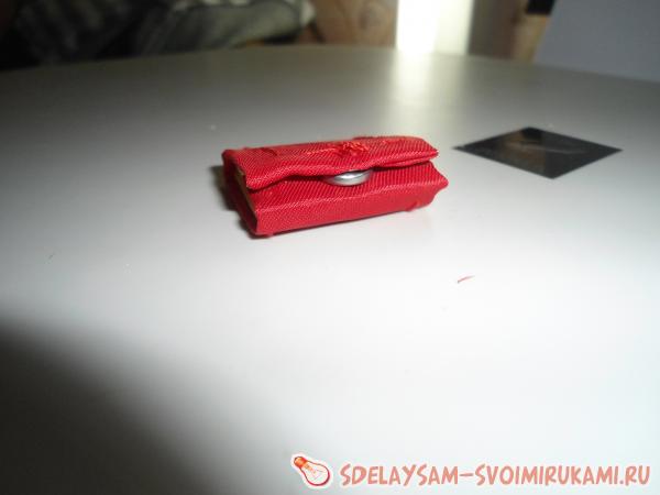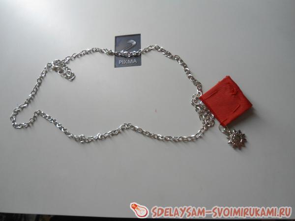 Для такой грандиозной вещицы вам станут помогать такие материалы как: ножницы, бесцветный клей, ткань или атласная лента, иголка и нитки, кнопка-заклепка, спички, цепочка, четыре звена, цепочка в полметра и замочек, лист формата А4 или клеевые листки, картонный лист.