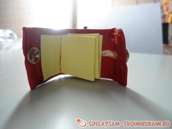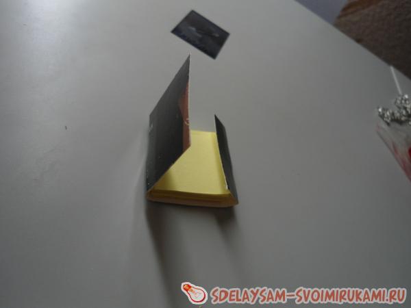 Первым делом, делаем внутренности записной книжки, а именно листочки. Их можно сделать с помощью простого листа бумаги формата А4 или клеевых листков. Если вы выбрали первый вариант, то складываем лист гармошкой и нарезаем потом их тем размером, каким вы хотите, чтобы был ваш блокнот.
