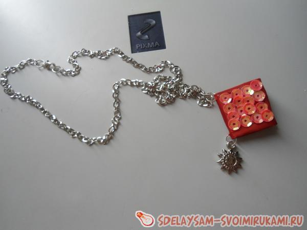 Можно оставить колье в таком виде, но можно сделать еще круче – поклеить сверху бисером или пайетками и вот выходит такая красота.