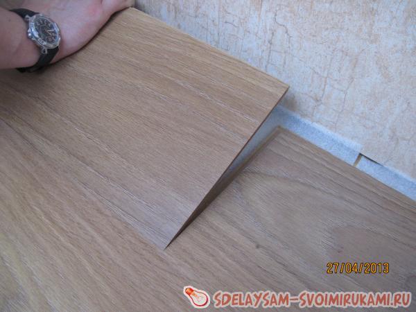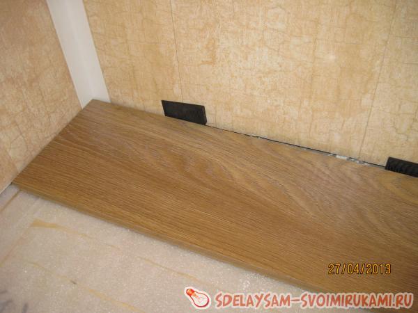 Из всех возможных вариантов отделки было решено остановиться на ламинате цвета зрелого дуба. Вощёный край выбранного ламината обеспечивает влагостойкость и долгий срок службы пола.