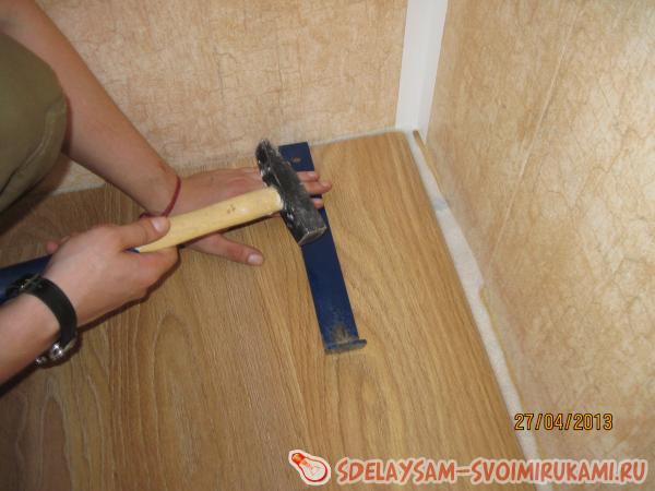 Крайние дощечки можно притянуть специальным S-образным рычагом, который продаётся в наборе « Для укладки ламината».