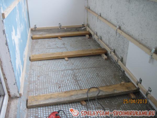 Затем были выставлены и закреплены новые ровные лаги на которые должен лечь пол.