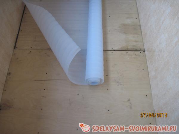Далее необходимо положить слой теплоизоляции. Для этого было решено использовать вспененную подложку толщиной 3 мм.