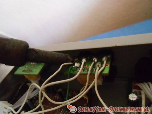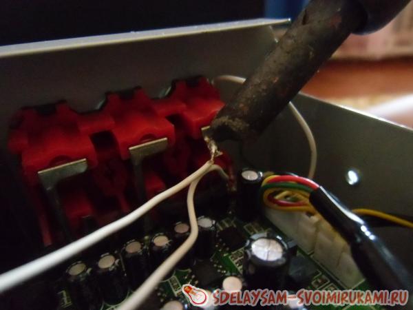 Теперь предстоял самый ответственный момент: припаять провод к каждому разъему и соединить с блоком усилителей.
