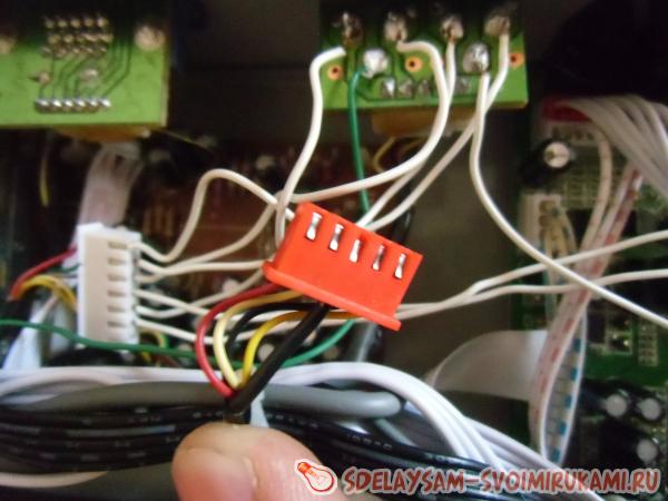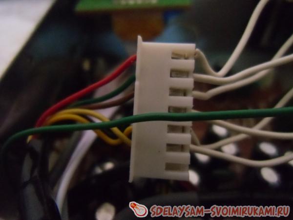 Припаянные провода я соединил в разъеме, идущем от усилителей согласно цветности канала, питание для усилителей тоже пришлось подводить зеленым проводом.