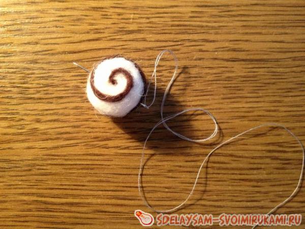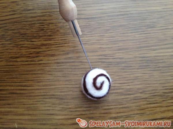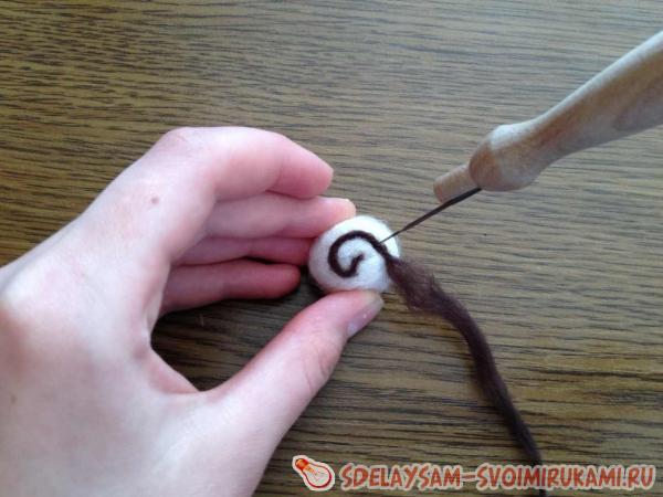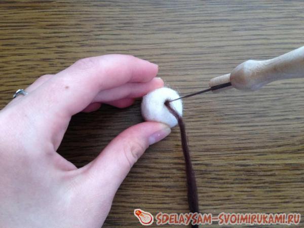 Иглой для валяния закрепим один конец "войлочного шнурка" в шарике, поглубже вбив его.