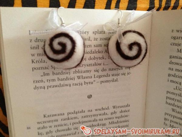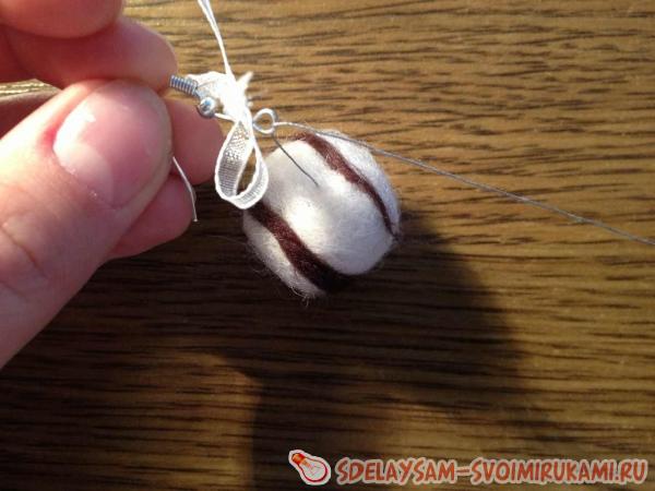 Проделываем тоже самое со вторым шариком и получаем оригинальные, мягкие войлочные сережки. Видите, сделать их оказалось совсем не сложно!