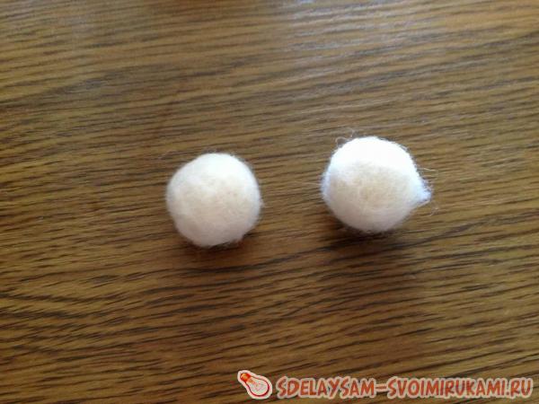 Тоже самое продлываем еще раз и получаем второй войлочный шарик, оставляем их высыхать.