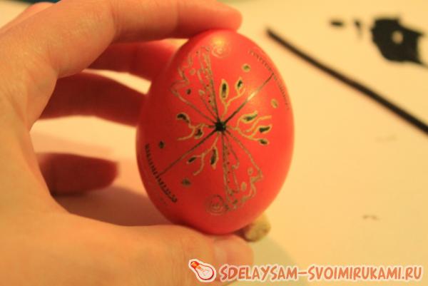 После того, как узор будет нанесен на обе стороны яйца, можно приступать к окраске.