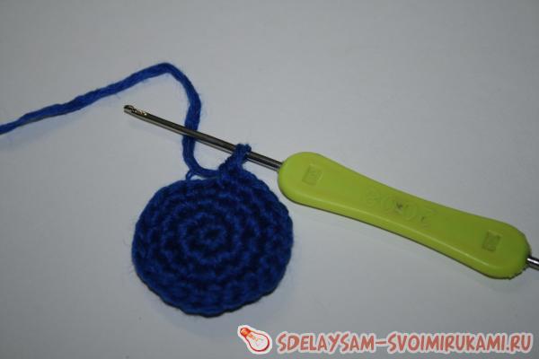 Делаем небольшой блинчик из 4-5 рядов, в зависимости от толщины нитки. И теперь начинаем вязать без прибавлений.