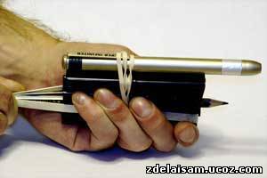 Арбалет из канцтоваров 5 май 2010 Игры и игрушки 28 215 1 Интересное видео как из зажимов для бумаги, бухгалтерских резинок, карандаша и лазерной указки можно сделать довольно серьезное оружие, которое может и поранить. Еще одна модификация офисного арбалетаИсточник: officeguns.com Вернуться назад 80 1 2 3 4 5 Похожие мастер-классы Как сделать простой лазерный уровень из указки Арбалет для офисной охоты Объемный браслет из резинок Модификация газового паяльника Модификация карманного фонарика (с аккумуляторов ААА на Особо интересное Нитка и пуговица Игрушечный парашют Маятник Робот-паук Объемные чудо-снежинки из бумаги Поделки из дискет Прокомментировать Вопрос: 4 минус один = Отправить Комментарии (1) #1 nono Гости 26 июня 2014 17:08 2 ux ti :belay: Ответить