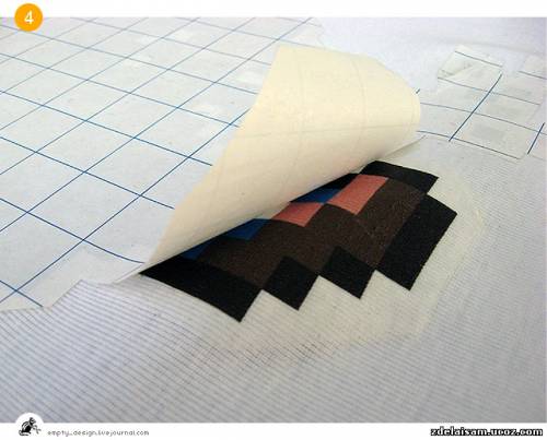 После этого пробуем аккуртано удалить защитный слой с изображения. подцепив ногтем край плёнки, тянем её вверх и вдоль структуры ткани. если при этом вместе с плёнкой отслаивается и изображение, следует приклеить защитный слой на место и снова прогладить это место утюгом (но лучше, сразу хорошо всё прогреть)