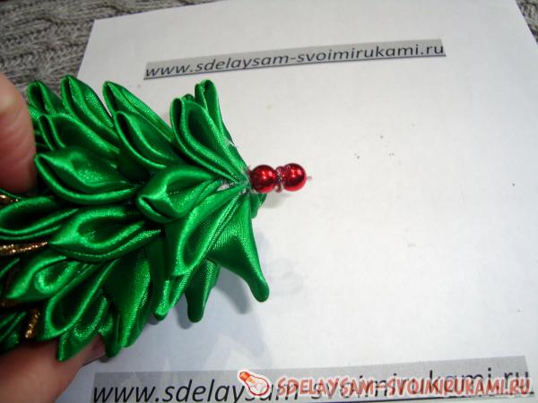 Красные бусинки нужно равномерно распределить по всей елочке. Здесь можно прибегнуть к шахматному рисунку.