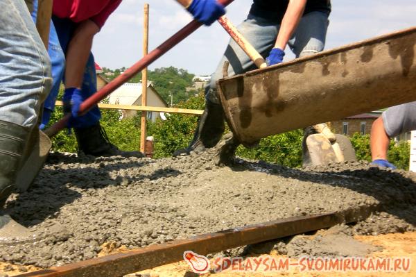 Проще всего заказать фабричный бетон, который доставят миксером к месту строительства и с помощью насоса, а также направляющего приспособления, имеющегося в комплекте данной машины, выгрузят прямо в заливаемое пространство.
