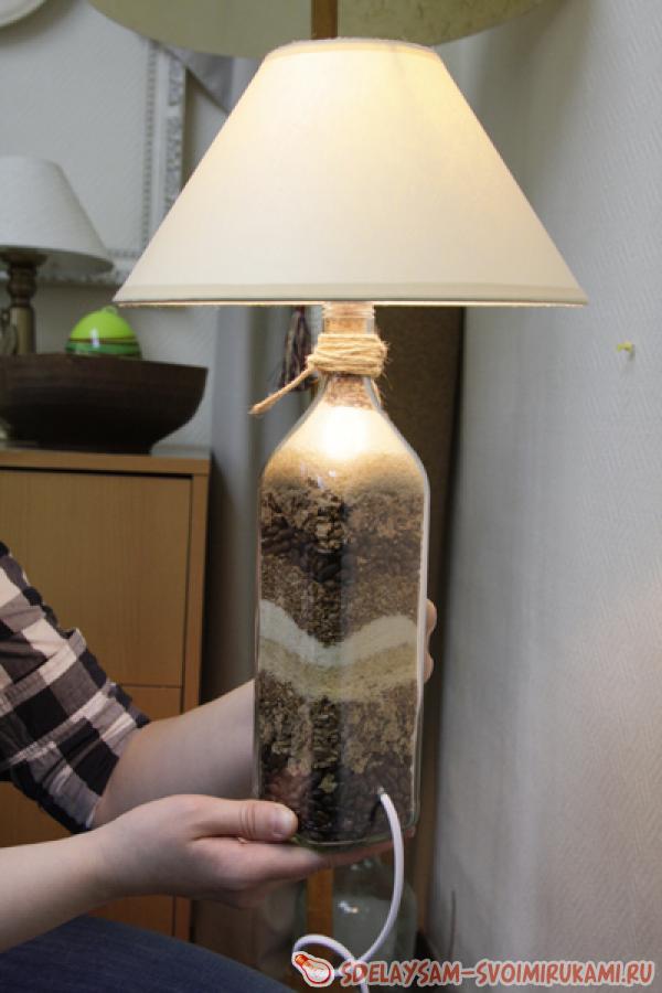 В любой конструкции самодельного светильника лучше всего использовать энергосберегающие лампы. Они практически не греются и не плавят конструкции.