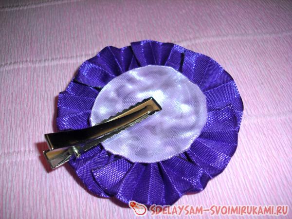 Металлический зажим осталось прикрепить поверх приклеенного круга сиреневого цвета.