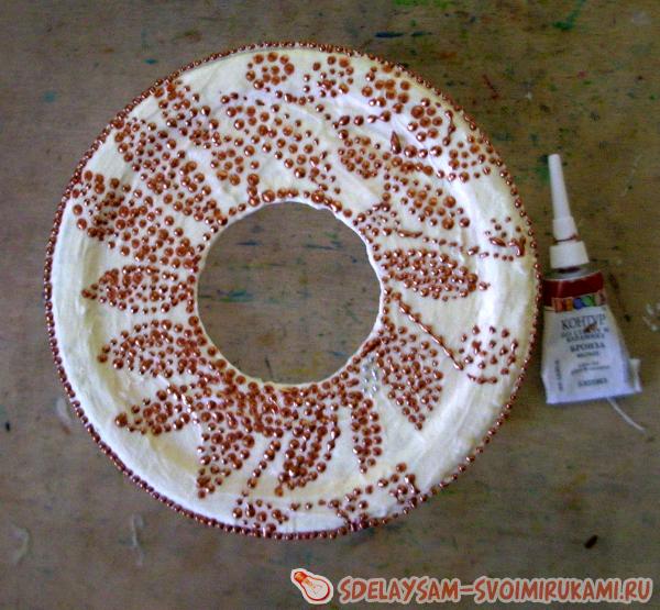 3.Когда краска полностью просохнет, начните наносить узор контуром по стеклу. Делайте небольшие точечки, стараясь их не смазывать;