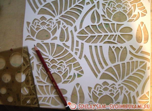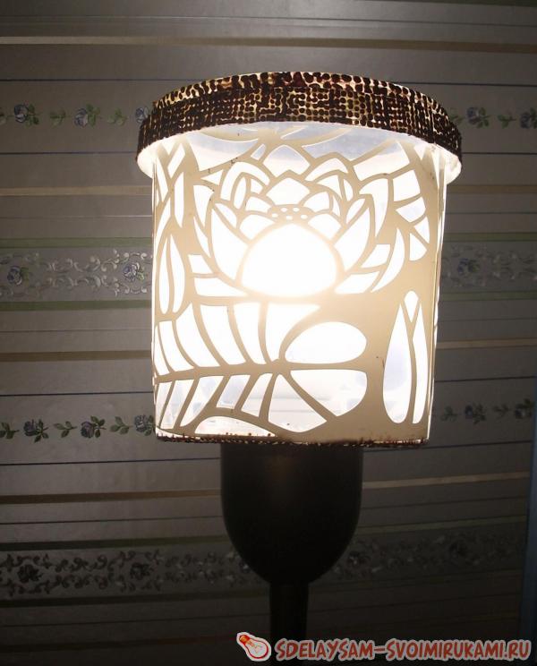 Итак, теперь вы знаете, как сделать абажур своими руками. Если у вас нет трафарета, то вы можете сделать его самостоятельно, аккуратно вырезав понравившийся узор из плотной бумаги.