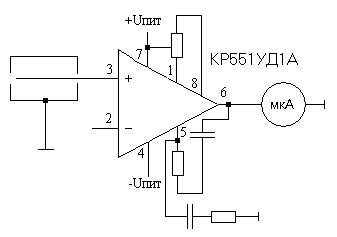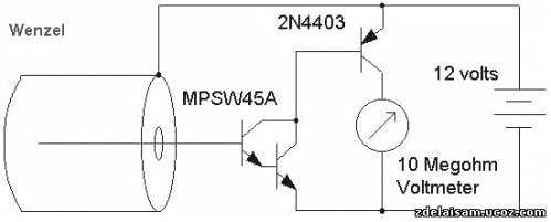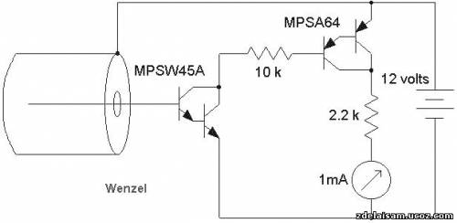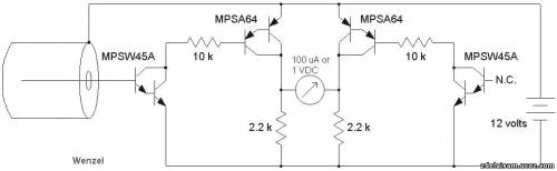 Это - простой датчик, учитывая его чувствительность! Деятельный экспериментатор может попробовать другие транзисторы, скорее всего, составные, например, MPSA18, или даже операционный усилитель тока, управляемый напряжением, например, CA3080 с разомкнутой цепью обратной связью.