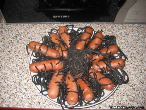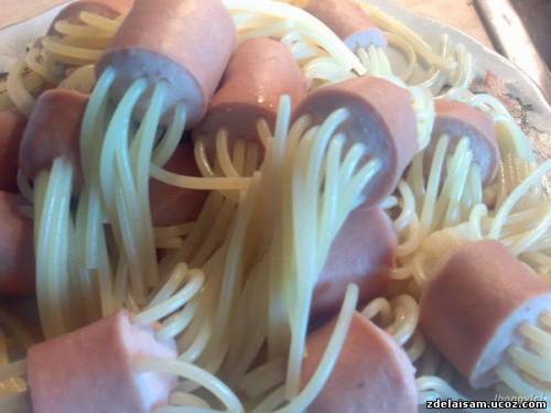 Через 5-7 минут получаем порцию волосатых сосисок.